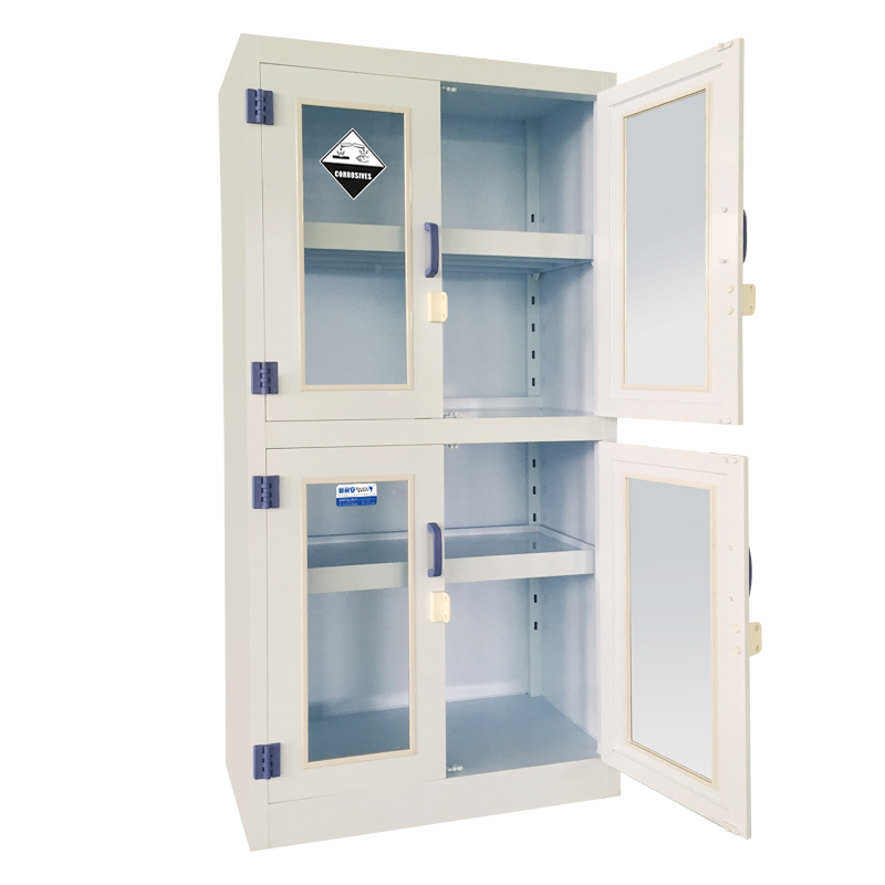 四門帶可視窗pp藥品安全柜產品簡介:是指尺寸為1800*900*450mm的一種用于實驗室存儲藥品或樣品的一種pp酸堿存儲柜
