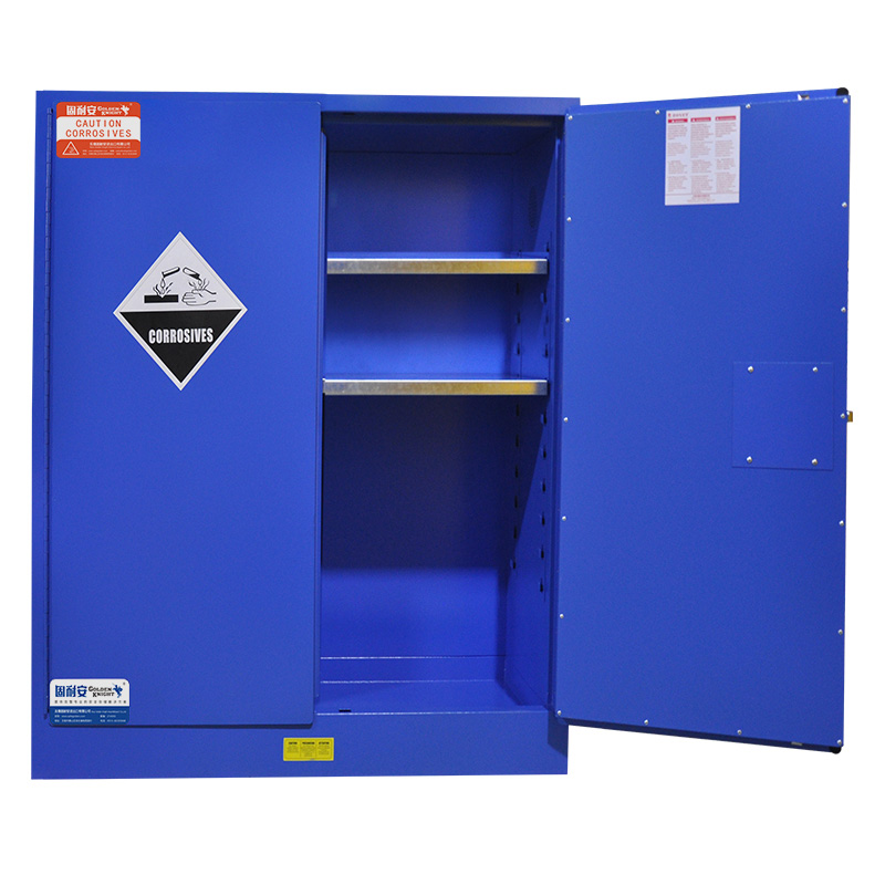 產品介紹:是指容積為60加侖/227升的一種用于存放弱腐蝕性液體的藍色防爆柜。