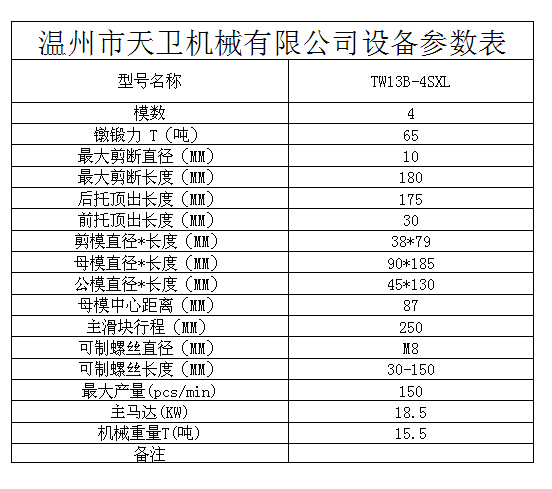 您當前的位置:首頁 / 產品中心 / 四模四沖冷鐓機 / └ TW13B(M8)全自動多工位冷鐓機 / TW13B-4SXL全自動多工位冷鐓機